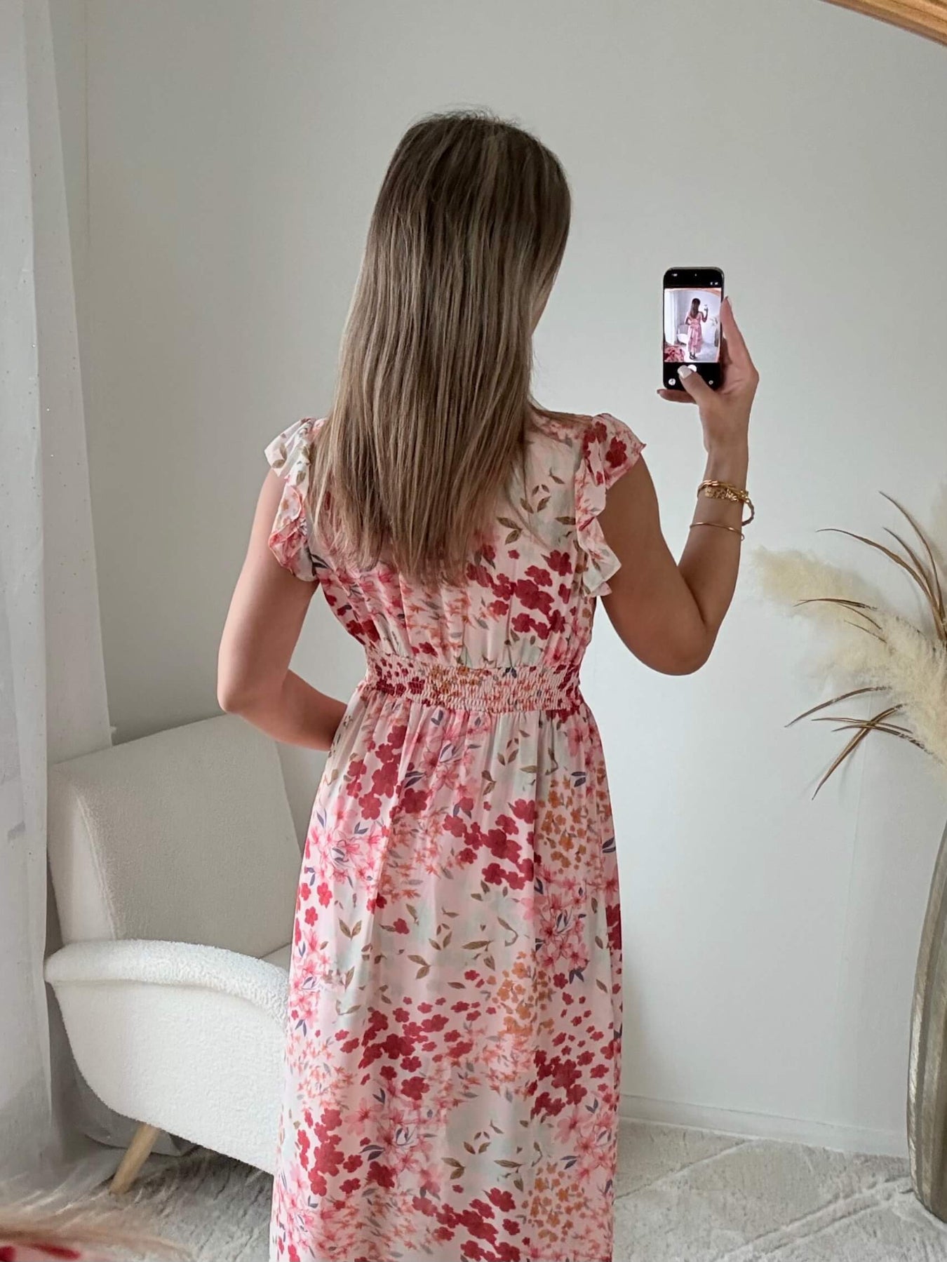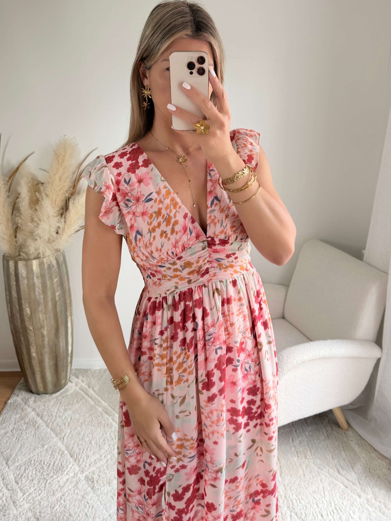 Robe longue floral corail rose - Avery
