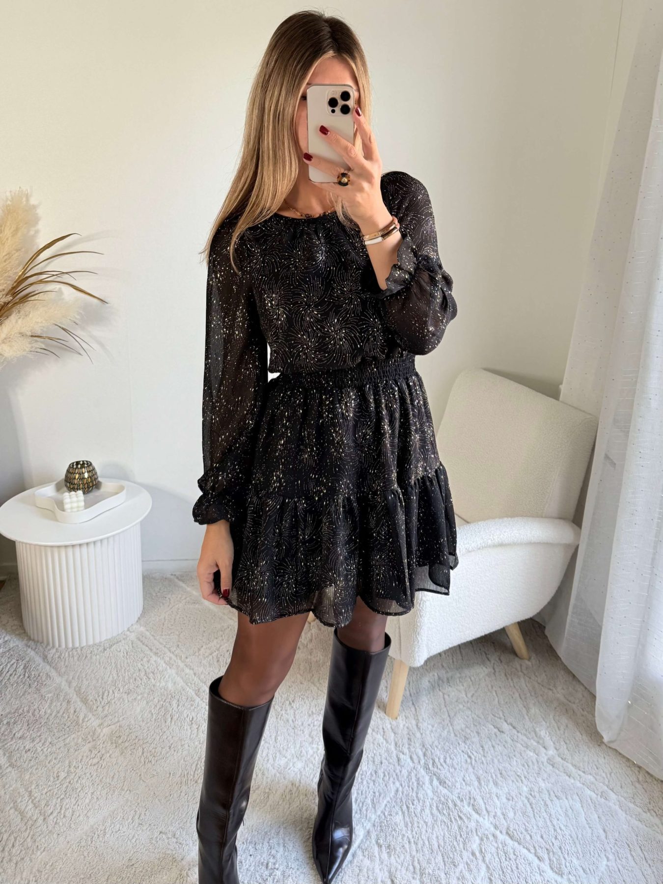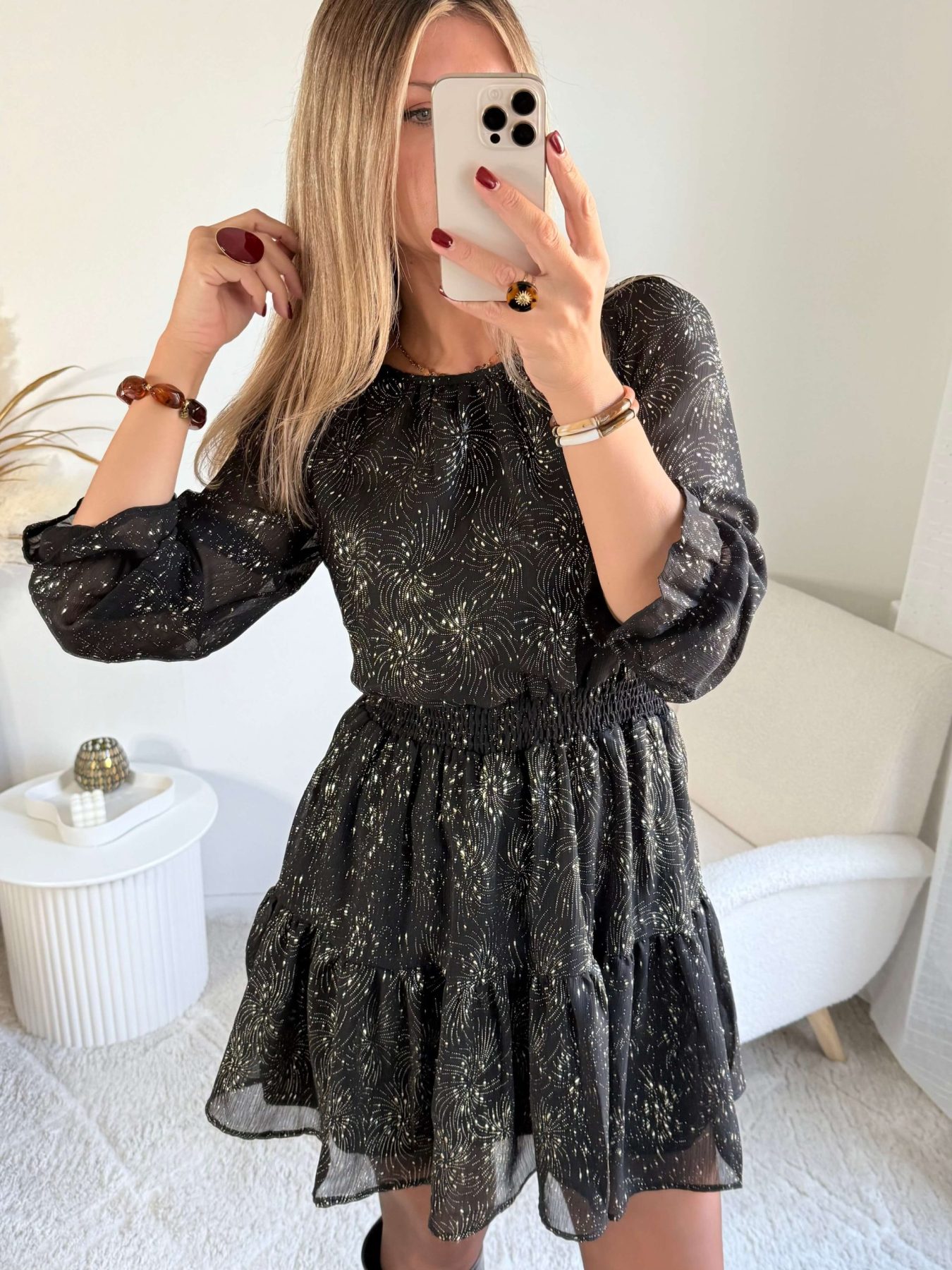 - Robe avec éclats dorés